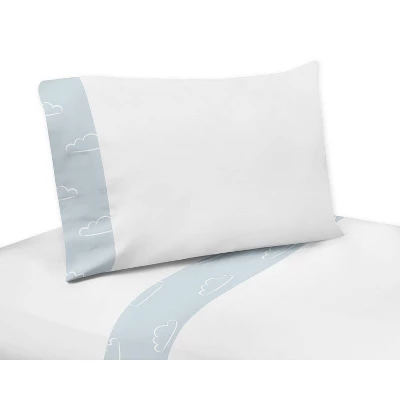 The 5pc Red and Blue Airplane toddler bedding collection by Sweet Jojo Designs will soar sky high for your little pilot. This delightful boy bedding set uses a sensational collection of exclusive brushed microfiber fabrics. It combines a fun coloring book inspired vintage air plane print, a coordinating cloud print, and solid fabrics. The colorful palette of red, orange, yellow, light blue, gray and black will create the perfect aviator themed bedroom. This Sweet Jojo Designs set will fit all standard toddler beds and is machine washable for easy care and repeated use. Toddler Set Includes: Comforter, Pillow Sham, Fitted Sheet, Flat Sheet and Pillow Case.