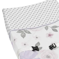 Sweet Jojo Designs Girl Changing Pad Cover Watercolor Floral Collection Lavender Purple And Grey
