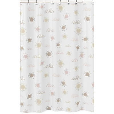 Desert Sun Shower Curtain is an easy way to create a bathroom makeover. Add a touch of style and a splash of color to your bathroom with this designer collection. Pair with coordinating Sweet Jojo Designs room accessories to complete the look and feel of your favorite theme. Features: Brushed Microfiber. Dimensions: 72 in. x 72 in. Machine washable. Shower hooks and liners not included.