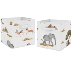 Sweet Jojo Designs Fabric Storage Bins Set Watercolor Woodland Forest Animals Green Brown White