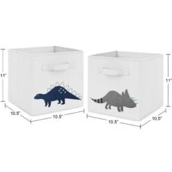 Sweet Jojo Designs Boy Set Of 2 Kids’ Decorative Fabric Storage Bins Mod Dinosaur Blue And Green