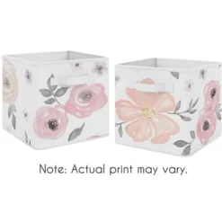 Sweet Jojo Designs Fabric Storage Bins Set Watercolor Floral Purple Grey And Pink