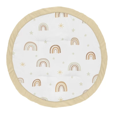 Neutral Boho Rainbow Collection Play Mats by Sweet Jojo Designs make tummy time and child development stylish and fun. Made with soft fabrics and fluffy fill, this multi-functional mat is small enough to take on the go. These adorable playmats will transform any room into the perfect play space. Great for vacations, playdates, beach outings, and everyday use at home. Always be aware of baby’s surroundings and keep an eye on baby while in use. Not intended for sleep. Sweet Jojo Designs creates various coordinating room accessories and decor for all of their children’s bedding and nursery bedding set collections (These items not included). Playmat is designed using a multicolor boho rainbow print and finished with mustard yellow piping and border – Brushed Microfiber