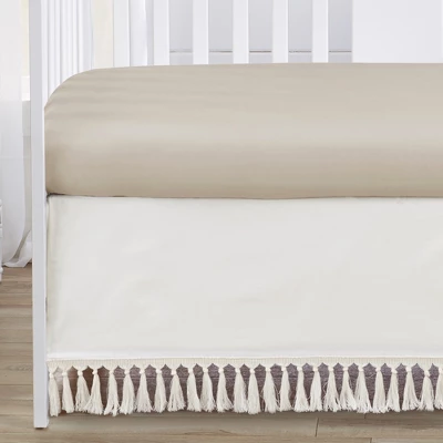 Desert Sun Taupe Collection dust ruffle crib skirt will add a finishing touch to your nursery. Decorate any room with this stylish mix and match piece or coordinate with an existing Sweet Jojo Designs ensemble to get a complete bedding set look. Sweet Jojo Designs creates various coordinating room accessories and decor for all of their children’s bedding and nursery set collections (These items not included). 100% Cotton – Solid Ivory