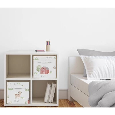 Farm Animals fabric storage bins by Sweet Jojo Designs offer a stylish yet functional storage solution. What a perfect way to transform your organizational system in any room. This set of two foldable storage cubes can be used in most standard cubby-hole shelving furniture in a classroom, as stand-alone bins in a playroom, or collapsed to save space when not in use in your little one’s bedroom. Please note: actual print may vary on bins featuring printed fabric. Sweet Jojo Designs creates various coordinating room accessories and decor for all of their children’s bedding and nursery bedding set collections (These items not included). Features a hand painted watercolor farmhouse print complete with pigs, horses, goats, geese, chickens and sheep.