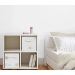 Desert Sun Taupe Collection fabric storage bins by Sweet Jojo Designs offer a stylish yet functional storage solution. What a perfect way to transform your organizational system in any room. This set of two foldable storage cubes can be used in most standard cubby-hole shelving furniture in a classroom, as stand-alone bins in a playroom, or collapsed to save space when not in use in your little one’s bedroom. Please note: actual print may vary on bins featuring printed fabric. Sweet Jojo Designs creates various coordinating room accessories and decor for all of their children’s bedding and nursery bedding set collections (These items not included). Features a neutral beige, taupe and ivory watercolor sun and mountains print