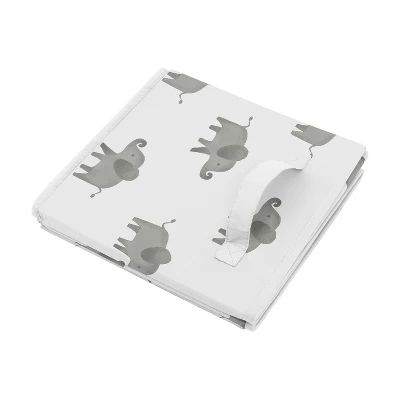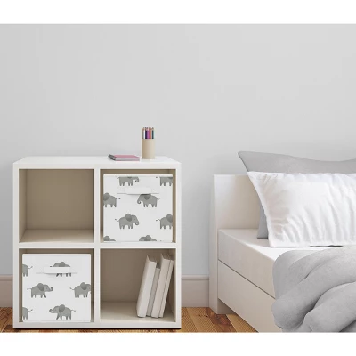 Elephant Grey and Mint Collection fabric storage bins by Sweet Jojo Designs offer a stylish yet functional storage solution. What a perfect way to transform your organizational system in any room. This set of two foldable storage cubes can be used in most standard cubby-hole shelving furniture in a classroom, as stand-alone bins in a playroom, or collapsed to save space when not in use in your little one’s bedroom. Please note: actual print may vary on bins featuring printed fabric. Sweet Jojo Designs creates various coordinating room accessories and decor for all of their children’s bedding and nursery bedding set collections (These items not included). Features a grey and white elephant print