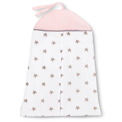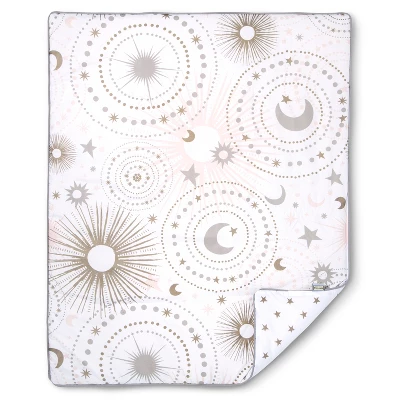 - Combines a Celestial print with Solid Blush Pink and gray Fabric