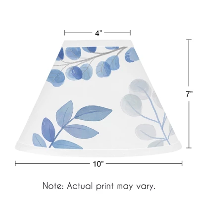 Blue Botanical Leaf Collection Sweet Jojo Designs Children’s Lamp Shades are especially created to coordinate with their children’s bedding sets to help complete the look and feel of the bedroom theme for your child. The lamp shade design is known as an ‘Uno’ (just has a ring/circle) lamp shade and is made to fit standard children’s or desk-sized lamp bases. Sweet Jojo Designs creates various coordinating room accessories and decor for all of their children’s bedding and nursery bedding set collections (These items not included). Blue, grey and white botanical floral leaves print