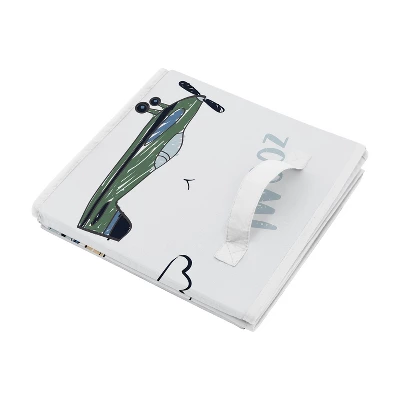 Airplane Green and Blue Collection fabric storage bins by Sweet Jojo Designs offer a stylish yet functional storage solution. What a perfect way to transform your organizational system in any room. This set of two foldable storage cubes can be used in most standard cubby-hole shelving furniture in a classroom, as stand-alone bins in a playroom, or collapsed to save space when not in use in your little one’s bedroom. Please note: actual print may vary on bins featuring printed fabric. Sweet Jojo Designs creates various coordinating room accessories and decor for all of their children’s bedding and nursery bedding set collections (These items not included). Features a grey, yellow, green, gray, white and blue vintage airplanes transportation air plane clouds sun sky aviator aviation airplane print
