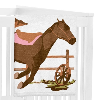 Western Cowgirl Collection Sweet Jojo Designs 3 Piece Milestone Baby Blankets offer the perfect prop to help you capture monthly growth achievements. Each blanket features the numbers 1-12 and two soft frames that you can easily place over the numbers to correspond with your little one’s age in months and weeks. They make an adorable backdrop for all your baby’s photos as you celebrate each month of their first year or use as a security blanket, nursery receiving swaddle, tummy time floor playmat, or even a stroller or car seat cover. Add these lightweight blankets to any new parent list or give as the best keepsake baby shower gift. Snapshots taken with this soft infancy chart tracker will help you make the most precious social media posts to share on your wall or feed for friends, family, and followers to enjoy. No filter needed! Pair your blanket with your favorite Sweet Jojo Designs crib bedding sets, receiving security blankets, changing pad covers, crib sheets and other baby room decor accessories (These items not included). 100% plush minky fleece featuring a light pink, brown, beige, blue, cream, taupe, tan and off white mountains wild west vintage country retro animal horse southwest western cowgirl print with an inspirational “There’s A New Cowgirl In Town” quote.