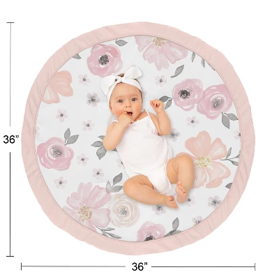 Watercolor Floral Pink and Grey Collection Play Mats by Sweet Jojo Designs make tummy time and child development stylish and fun. Made with soft fabrics and fluffy fill, this multi-functional mat is small enough to take on the go. These adorable playmats will transform any room into the perfect play space. Great for vacations, playdates, beach outings, and everyday use at home. Always be aware of baby’s surroundings and keep an eye on baby while in use. Not intended for sleep. Sweet Jojo Designs creates various coordinating room accessories and decor for all of their children’s bedding and nursery bedding set collections (These items not included). Playmat is designed using a blush pink, grey, and white watercolor floral print and finished with blush pink piping and border – Brushed Microfiber