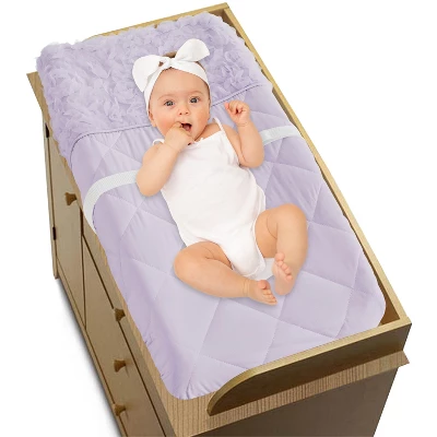 Rose Lavender Collection Sweet Jojo Designs baby changing pad covers is the perfect nursery essential – it is created with soft fabrics in exclusive patterns and colors and finished with an embellished plush quilted diamond design to hold lining in place. Use a changing mat cover for extra protection and comfort for newborns and toddlers during outfit changes or changing diapers. And it’s always a good idea to buy extras so you can easily change it out when it’s time to wash. Sweet Jojo Designs offers coordinating crib bedding sets, receiving security blankets, nursing pillow covers and other baby room decor accessories (These items not included). Chiffon Mesh and Brushed Microfiber – Lavender Purple Floral Rose