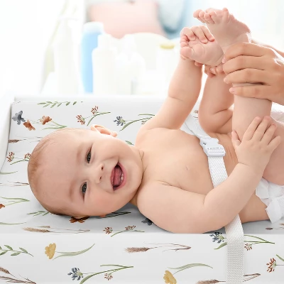 - Fitted changing pad cover features elastic edges