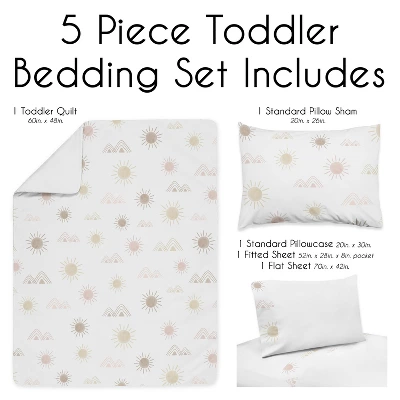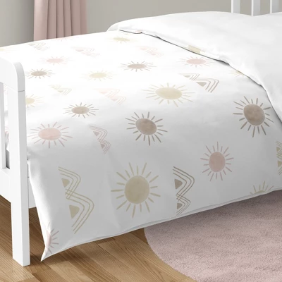 Desert Sun Collection Sweet Jojo Designs creates various coordinating room accessories for all of their children’s bedding sets including wall decor, hampers, lampshades and window treatments. Toddler set includes: Toddler Comforter, Fitted Sheet, Flat Sheet, Sham, and Pillow Case. Sweet Jojo Designs creates various coordinating room accessories and decor for all of their children’s bedding and nursery bedding set collections ( These items not included ). Features a pink and taupe watercolor desert sun and mountain print